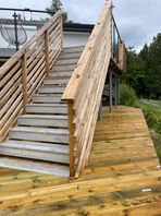 Kunden hadde allerede en trapp fra verandaen, og ønsket en terrasse under denne verandaen.